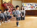 「好きな歌は何ですか?」「幼稚園で一番楽しかったことは何ですか?」「給食何が食べたいですか?」というインタビューに「はい!はい!は~い!」と元気に手を挙げて答えていたゆり組でした。ゆり組さんに見せたい!と毎日練習したジェスチャーゲームも披露しました。難問もたくさんあり、笑いに包まれました。