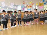 終始嬉しそうなゆり組の子どもたちでした。「今日はありがとう」「ゆり組からのプレゼントです」と修了記念製作を幼稚園にプレゼントしてくれました。