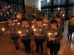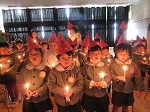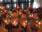 園長先生から先生たちへ。先生たちから子どもたちへ。ろうそくの火をつけ、キャンドルサービスをしました。ろうそくの火がともり、幻想的な雰囲気に包まれました。
