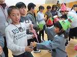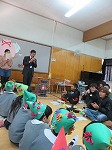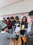 プレゼント交換もしました。子どもたちからはまつぼっくりツリーのプレゼント。6年生からは飛び出すクリスマスカードをプレゼントしてもらいました。
