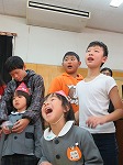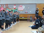 第2部は田辺東小学校6年生と年長ゆり組、年中すみれ合同のクリスマス会をしました。校長先生がリコーダーで♪ジングルベルを演奏してくださり、みんなも自然と手拍子をして楽しくスタートしました。