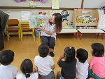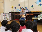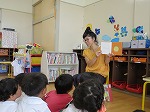 絵本が大好きな子どもたち。毎日、先生に読んでもらうことを心待ちにしています。今日は「よむよむの会」のお母さんたちが「お話の先生」になって、子どもたちに絵本を読んでくださいました。
