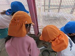 年中すみれ組は、順番に年長さんからうさぎの世話の仕方を教えてもらっています。