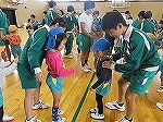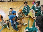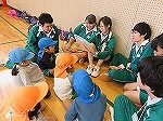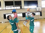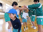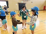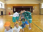 その後、年長ゆり組と年中すみれ組は培良中学校に行きました。「かわいい」と出迎えてもらい緊張もすぐにほぐれました。いつも楽しんでいる♪かみなり体操や♪あしたになぁれのフォークダンスをみんなでしました。中学生のお兄ちゃん・お姉ちゃんも笑顔で踊ってくれて嬉しかったです。