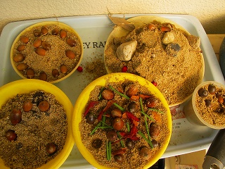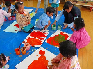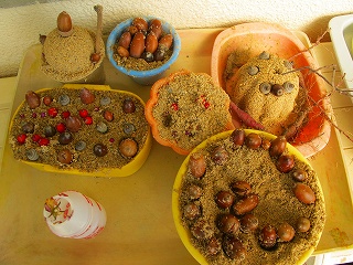 園には、ドングリなど木の実が一杯、色さまざまの落ち葉のじゅうたんは子どもたちを