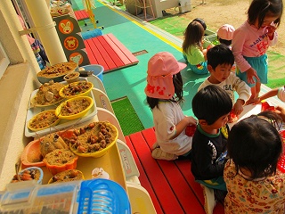 とりこにします。砂場のごちそうに、描く絵の中に秋への感動がいっぱい!