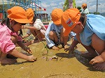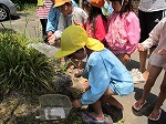 部屋で楽しみに見守っていたカマキリの卵からついに生まれたよ。ぞろぞろぞろぞろ・・・うわあ赤ちゃんだらけ。手にも服にも登ってきたあ。みんなでどろんこケーキでお祝い。この日が誕生日の友だちがいて記念すべき日になりました。