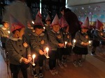 ましt 12月9日 楽しみにしていたクリスマス会でした。いつもと違うホールにワクワクドキドキ♡ちょっぴり緊張しながらキャンドルサービスをしました。ホールが幻想的な雰囲気に包まれました。
