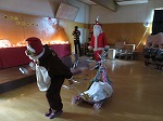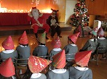 「うわぁサンタさん!」「サンタさんとトナカイさん!」あわてんぼうのサンタクロースとトナカイさんが幼稚園に来てくれました。