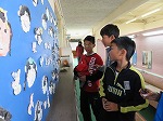 帰り際、自分たちった修了記念製作を見つけ懐かしく話す6年生の姿がありました。