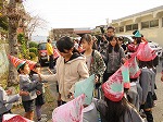 「今日は来てくれてありがとう」「またきてね」小学校と幼稚園をつなぐ「なかよしアーチ」までお見送りしました。