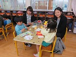年中すみれ組はお母さんと一緒にこいのぼりを作りました。のりの使い方を確認し吹き流しを作りました。素敵なこいのぼりができて嬉しそうに♪やねよりたかい こいのぼり~と歌っていましたよ。