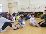 年長ゆり組はふれあい遊びとわらべ歌遊びをしました。お母さんに抱っこしてもらったり、全員でなべなべそこぬけをしました。「できたー」と大歓声でした。