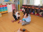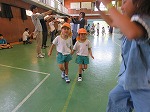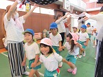 おうちの方がみんなで大きな橋を作り、♪ロンドン橋に合わせて橋を渡りました。「落ちる~」「キャー!」と歓声があがっていましたよ。