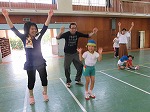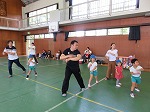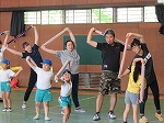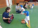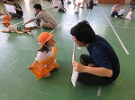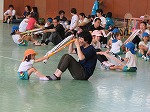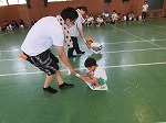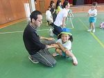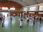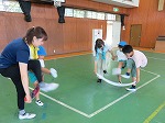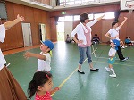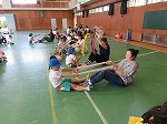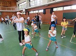 田辺東小学校に移動して、おうちの方と体を動かして遊びました。