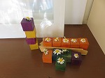 今日、すみれ組のお友達がかわいい一輪挿しを作ってみせてくれたので、ご紹介します。穴のあいた積み木にお花をていねいに生けて(?)います。  |