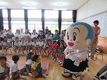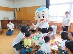 毎月19日「食育の日」の(19)日と一休さんをかけて京田辺市観光大使である一休さんが来園してくれ、大喜びの子どもたちでした。