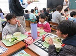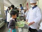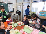 田辺東小学校へ3回目の給食体験に行ってきました。今回は、最終ということで、今までの体験を生かして5年生と一緒に給食の配膳をしたり、みんなで一緒に給食を食べたりしました。