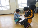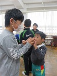今までも、お兄さん、お姉さんから優しく教えてもらったり遊んでもらったりしてきたことで、安心して給食を食べ、遊ぶ時も子ども達が得意なコマを披露したり一緒に絵を描いたりしながら笑顔で関わる姿が見られました。