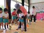 「こうやって持つんだよ」「そうそう。上手!」一人一人持ち方を教えてもらいました。