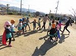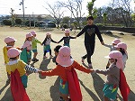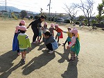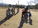 12月に入り、北風が冷たく冬到来です。でも、子どもたちは寒さに負けず元気いっぱい!朝みんなで体操してマラソンを継続して頑張っています。今日は年長ゆり組が「はないちもんめ」をしました。「いれてー」と年中、年少さんのお友だちも仲間入り☆♪「かーってうれしいはないちもんめ」と大きな声が広い園庭に響きました。
