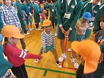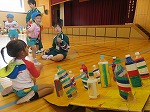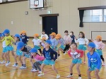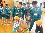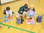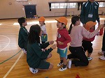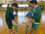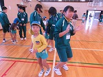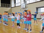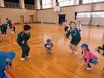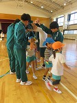 広い体育館に入って、ちょっぴり緊張気味の子ども達でしたが、一緒に体操をするとすっかりいつもの笑顔になりました。お兄さんお姉さんも一緒に体を動かしてくれました。