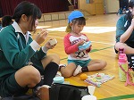 お弁当も一緒に食べました。「おいしいね」「卵焼きいっしょ!」会話も弾み、楽しいおいしい昼食となりました。