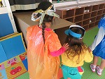 ハロウィンという外国の文化にも触れることができた楽しいひとときでした。なりきって遊んだり、言葉のやりとりを楽しんだり、表現する楽しさをこれからの遊びにつなげていきたいと思っています。