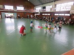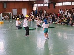 大好きなかけっこでは3歳児うさぎ組、4歳児すみれ組の子ども達は、5歳児ゆり組のお兄さん・お姉さんにタッチしてゴール!ゆり組の子ども達は、ゴールテープに向かって力いっぱい走り切りました。
