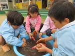 11月20日 幼稚園で掘ったお芋と東区で収穫させていただいたお芋で何日も前から楽しみにしていた焼き芋大会をしました。朝からウキウキワクワク♡お芋をきれいに洗って、ぬれ新聞にくるみ、アルミホイルに包むこともみんなでしました。