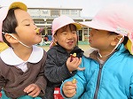 焼き上がりを今か今かと待っていた子どもたち!「焼けたよ~」と言うとガッツポーズのお友達もいました。「あまーい」「おいしいね」「あったかーい」みんなの顔がとってもいい顔になりました。