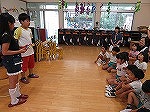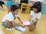 田辺東小学校の3年生が年長ゆり組の子ども達に、小学校運動会の招待状を届けに来てくれました。