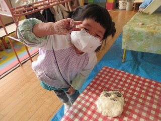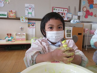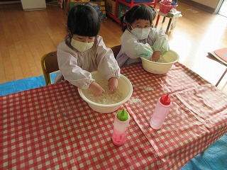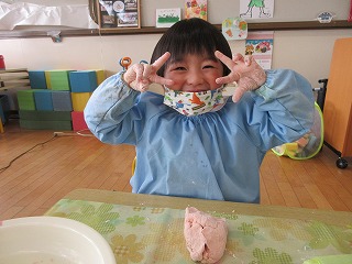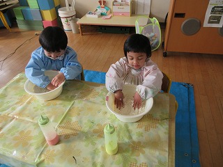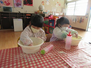 年少組、うさぎ組で小麦粉粘土をして楽しみました。