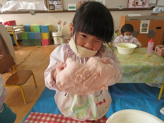 「ふわふわ~」と小麦粉の感触を楽しみました。
