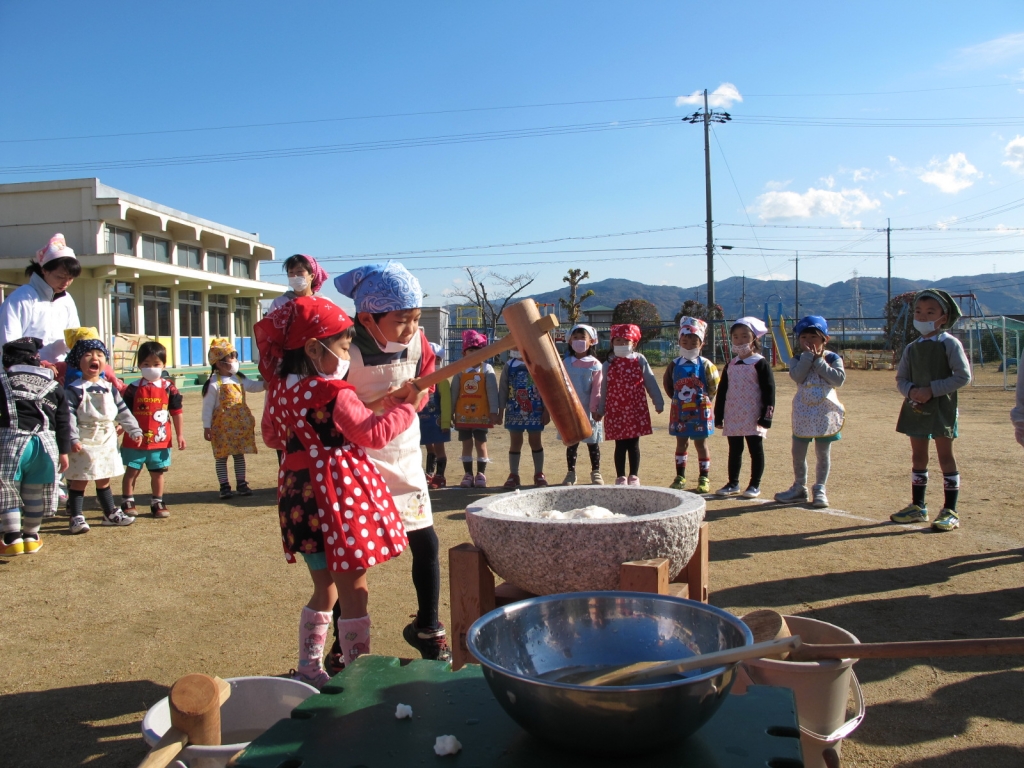みんなでお餅つき。今年に感謝、来年もよろしくね。願いをこめて。