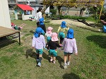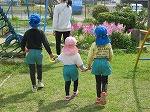 コロナ対策のため、お散歩リングを使っています。広い園庭をいっぱい歩きました。