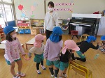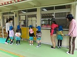 おとなりの河原保育所分園にも行きました。1歳児、2歳児の小さいお友達が近づいて来てくれて、みんなうれしそうでした。