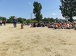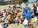 非常ベルが鳴り、緊張した表情で先生の周りに集まり、話を聞いて小学校まで避難しました。小学校のお兄さん・お姉さんと一緒に校長先生や消防士さんの話をしっかり聞くことができました。その後、小学校の先生の消火器訓練の様子をみせてもらい、拍手をしていた子どもたちです。