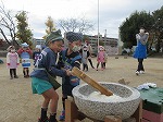 普段できない貴重な体験ができました。このような直接体験、感動体験を通して子ども達は心豊かに大きくなります。五感で感じて豊かな感性が身についていきます。お餅つきを手伝ってくださったお父さん、お母さん、ガス台を貸してくださった田辺団地自治会、臼を運んでくださった田辺東小学校の先生…たくさんの方々のお力を借りてお餅つきをすることができました。ありがとうございました。