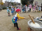 楽しみにしていたお餅つきをしました。前日、年長ゆり組がもち米を洗ってくれました。