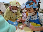 「お餅ってあったかいね」「ふわふわ~」とお餅のあたたかさを感じながら、丸めました。