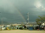 突然のスコールのような雨が降り、空を見上げてみると虹が出ていました。