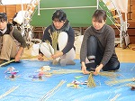 12月7日 わらに触れ合いながら、保護者同士がものつくりを楽しみ、親睦をはかろう!と宇治田原町の藤井さんをお迎えしてPTA井戸端会議「しめ縄作り」をしました。しめ縄を飾る意味や日本の伝統文化を学ぶ機会となりました。普段触らないわらに触れて、感触を味わったり編む難しさを感じたりできました。