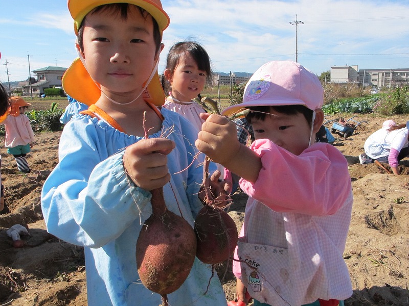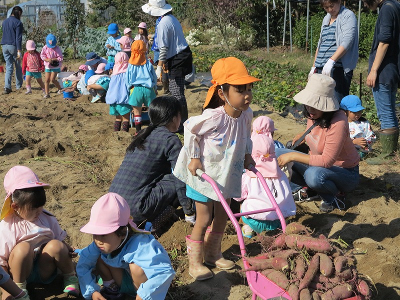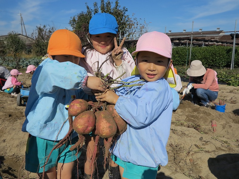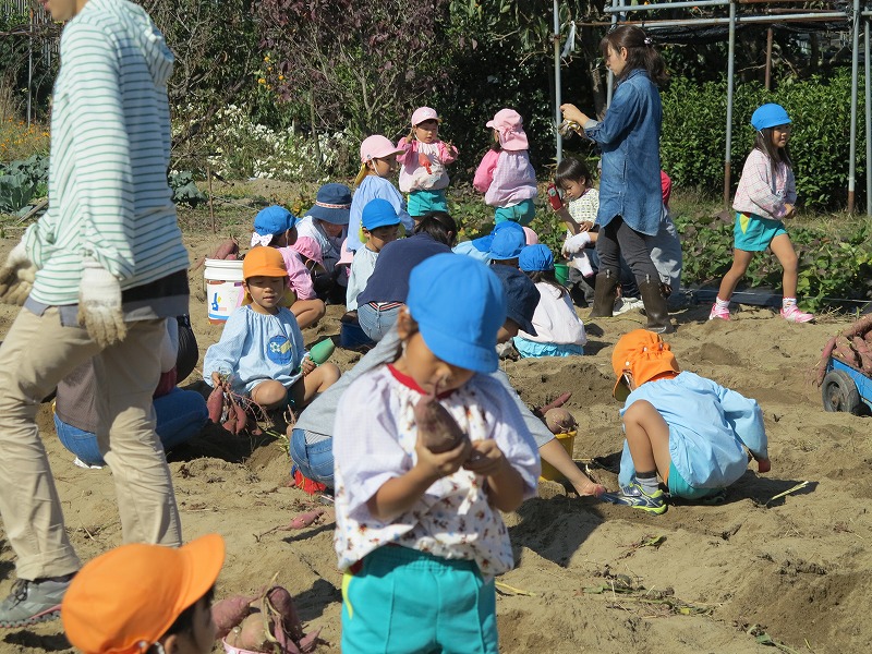 幼稚園の近くの東区の畑で、お芋掘り第2弾。砂土のため、