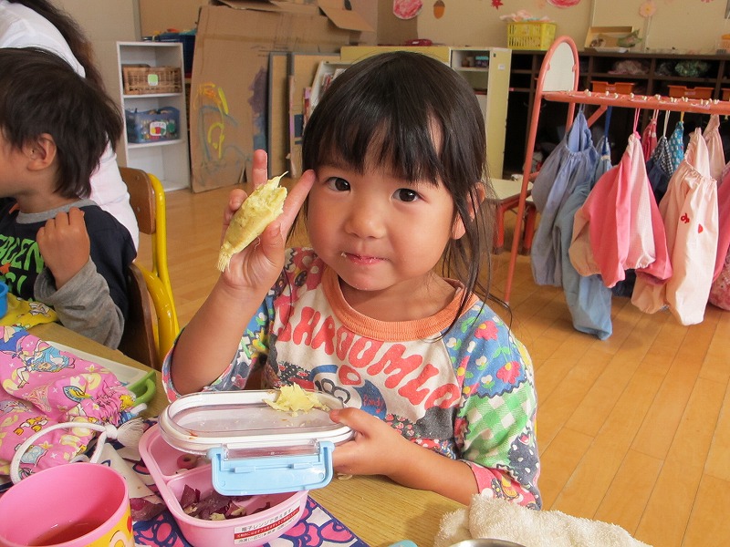 たちの力も借りていっぱい掘れました。さっそく食べたふかし芋、
