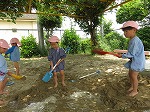 はだしになって、どろんこパンツをはいて…裏の大きな砂場へレッツゴー!!!