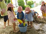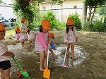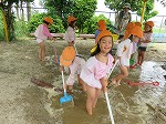初めてのどろんこ遊びに大喜びのうさぎ組でした。