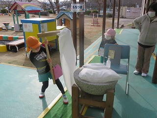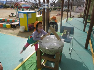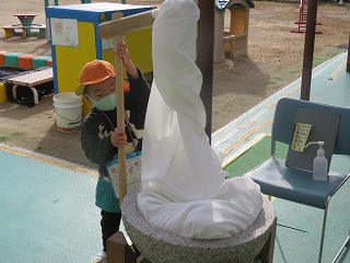 お餅つきごっこコーナーではお餅つきを疑似体験しました。
