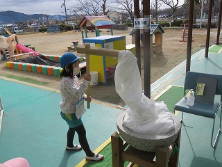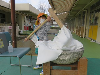 杵をもって「おもたーい!」と言いながら楽しんでいました。