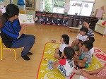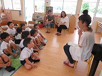 よむよむサークルのお母さん方が降園前に、各クラスで絵本を読んでくださいました。「あっ!○○ちゃんのお母さんや!」とお母さん方の登場に喜んでいた子ども達です。お話が始まるとシーンと静かになり、お話の世界を楽しみました。